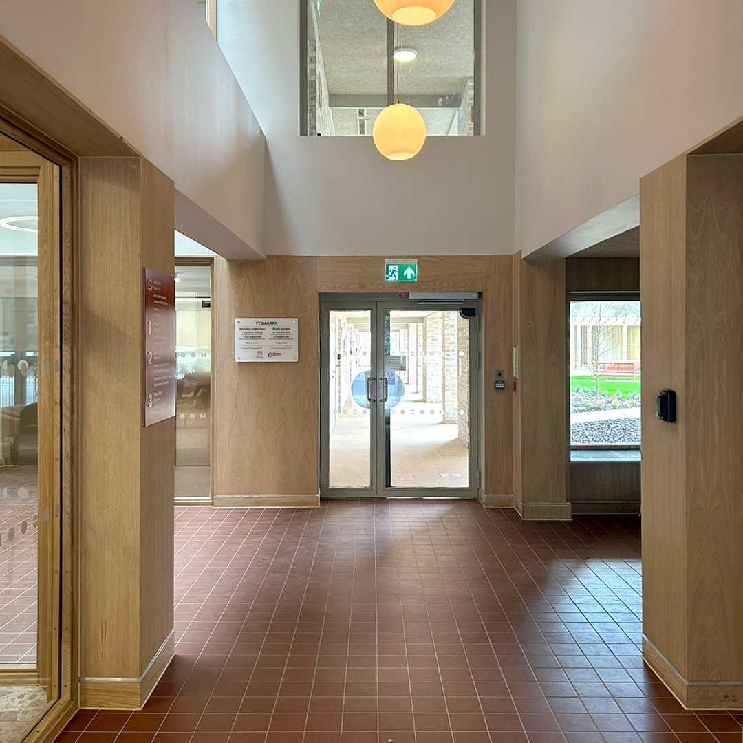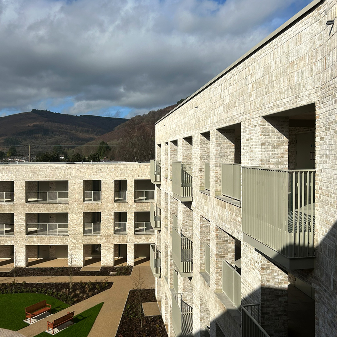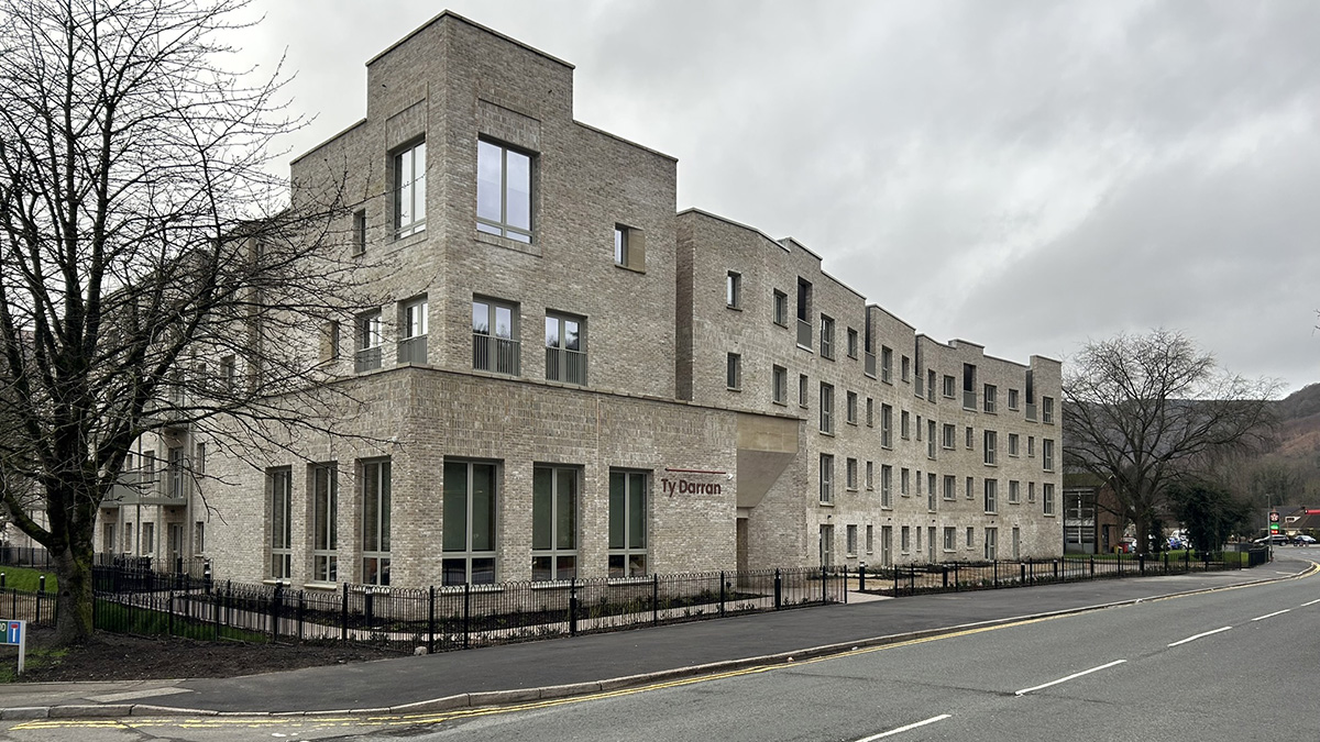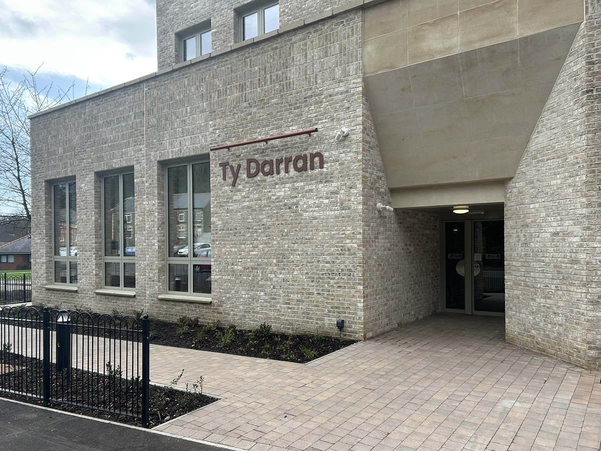 Ty Darran is Caerphilly County Borough Council’s exemplary new later living development located in Risca, South Wales. The project provides 46 new apartments for the over 55s, a series of communal spaces, courtyard garden and extensive landscaped grounds. As a local authority affordable housing project for the elderly, Ty Darran is remarkable in a number of key areas; It is outward looking, not hidden away like ‘sheltered’ housing so often is; located just north of the thriving town centre of Risca, it is proud to be a part of the community with local services and amenities within easy reach for residents to enjoy and maintain independence.